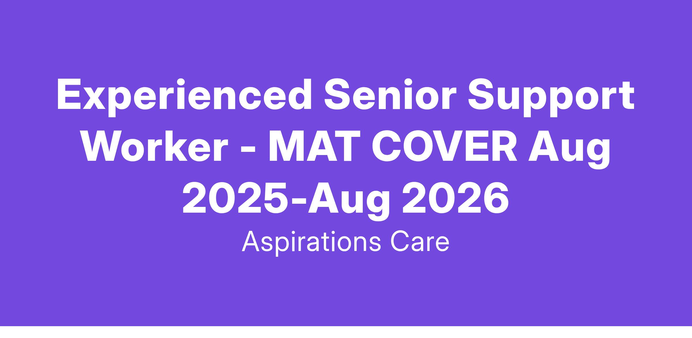 Experienced Senior Support Workers - MAT COVER Aug 2025-Aug 2026